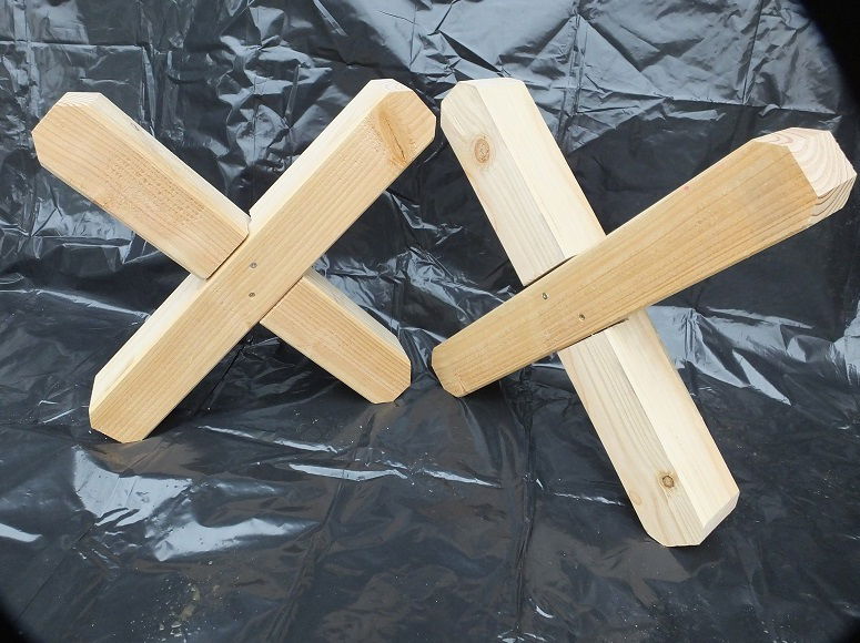 Cavaletti Kreuze, 9 x 9 cm, roh / weiß, Höhe 47 cm (Douglasie)